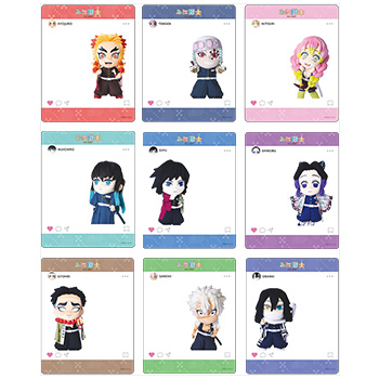 通販商品みに隊士 ランダムSNS風クリアカード Vol.2(全9種)煉獄杏寿郎/宇髄天元/甘露寺蜜璃/時透無一郎/冨岡義勇/胡蝶しのぶ/悲鳴嶼行冥/不死川実弥/伊黒小芭内¥500(税込)