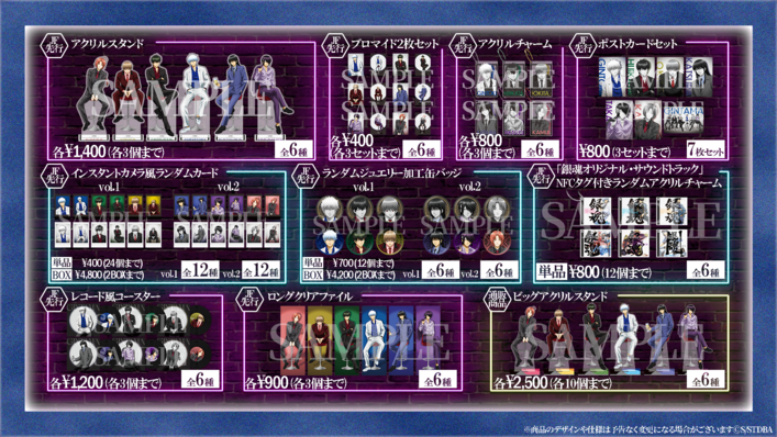 銀時、土方、沖田、桂、高杉、神威の6キャラクターの新規描き下ろしイラストを使用したアクリルスタンドや、ブロマイド2枚セット、スマートフォンをかざすと「銀魂」シリーズの楽曲のストリーミングサービスへのリンクが埋め込まれたNFCキーホルダー等、様々なグッズを販売いたします。