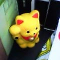 机には縁起をかついで招き猫を飾っています。制作が順調に進みますように、ビデオが売れますように。