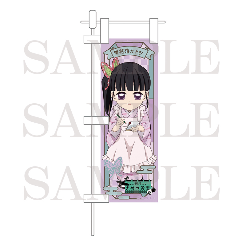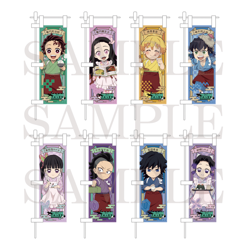 食堂風ミニのぼり(全8種)各1,600円食堂風ミニのぼり(全8種)各1,600円ufotable描き下ろしイラストを使用した、机に飾れるサイズのミニのぼり。サイズ:約H300×W130mm(支柱、台座含む)材質 :(生地)ポリエステル(支柱・キャップ)PVC、ABS