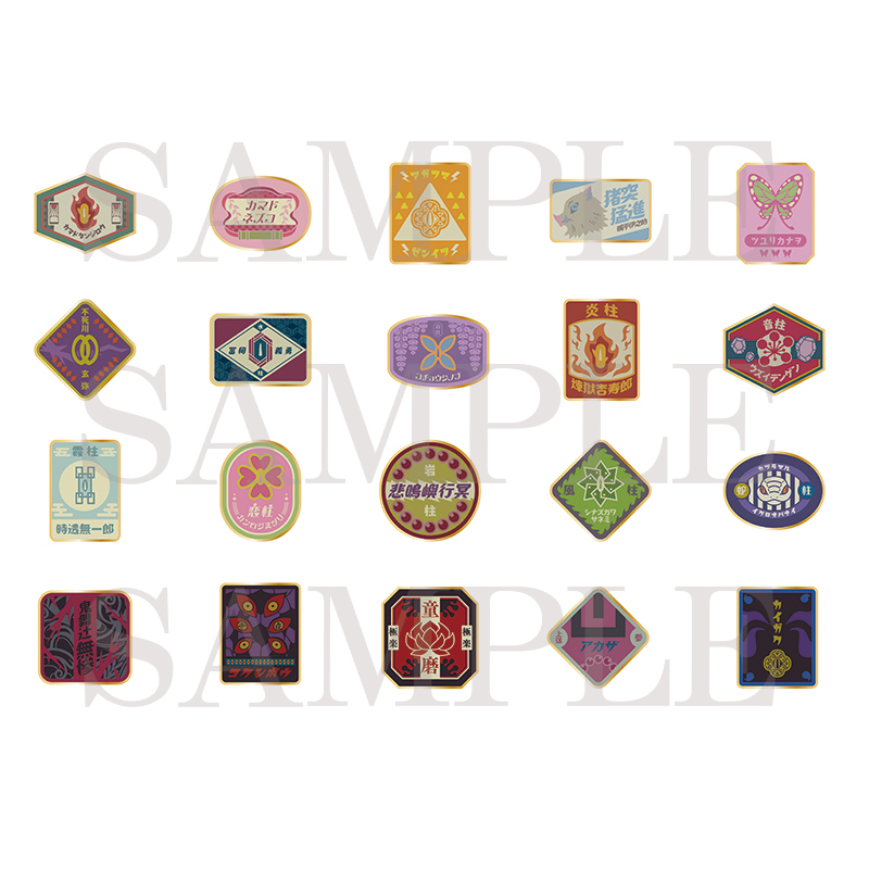 ランダムピンズ(全20種)単品:880円/BOX:17,600円ランダムピンズ(全20種)単品:880円/BOX:17,600円キャラクターのモチーフをアイコンのようにデザインした、隊士と鬼のランダムピンズ。サイズ:H40×W40mm以内 ※サイズはキャラクターによって異なります材質 :(本体)真鍮