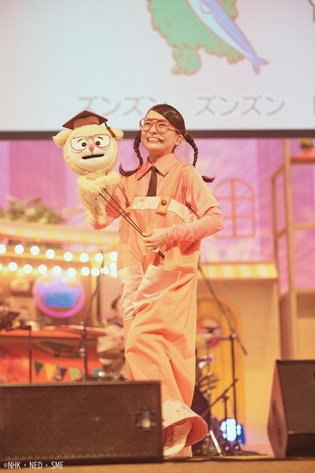 助数詞をテーマにした「ポピンのズンドコ節」(ポピン)、生物の進化をヒップホップにした「ずっしんかー!」(ヴィーテ)では、ウェイキーやドーネなどが2階席、3階席に登場。観客の間近で踊りながら会場を一周し、子どもたちの歓ぶ声が上がる。