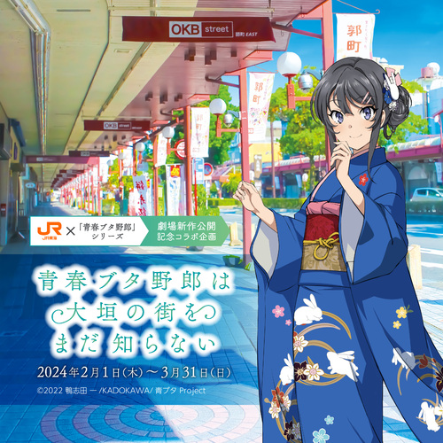 劇場アニメ「青春ブタ野郎はランドセルガールの夢を見ない」の公開を記念して、JR東海と「青春ブタ野郎」シリーズ(※以下”青ブタ”)のコラボキャンペーンを、2月1日から岐阜県大垣市で実施します。