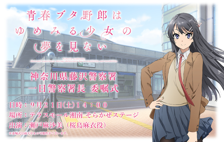 「青春ブタ野郎はゆめみる少女の夢を見ない」の舞台・藤沢市にて桜島麻衣役・瀬戸麻沙美さんが交通安全キャンペーンの藤沢警察署一日署長を委嘱されることになりました!
