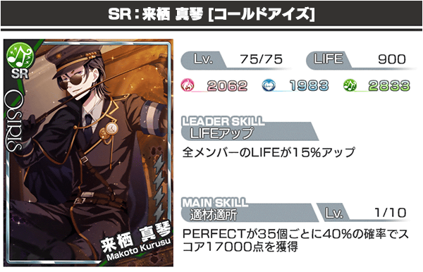 ※ガチャで紹介されている各カードは、Lv.75時(SR+)、Lv.90時(SSR+)のブレイク後のパラメータになります。