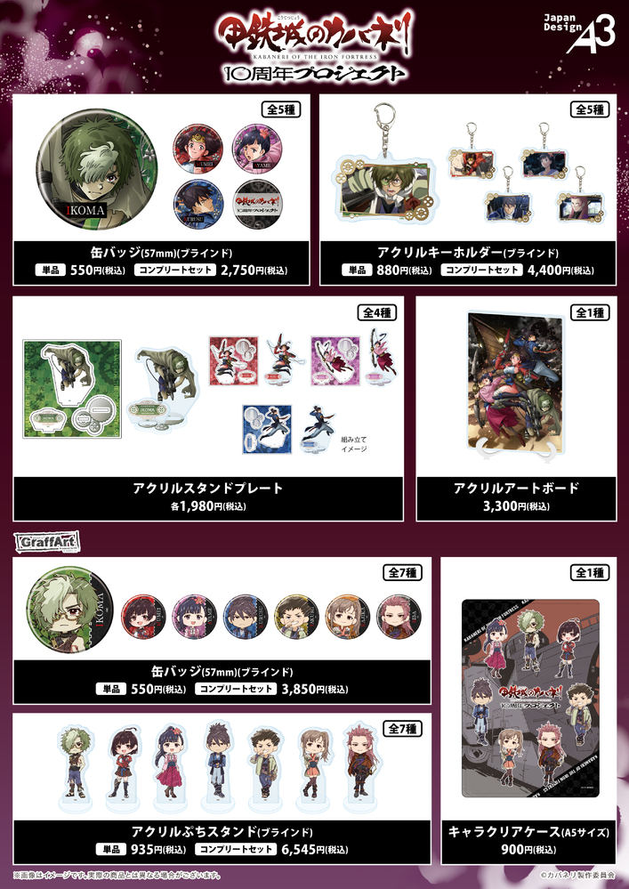5月21日(木)~6月4日(木)の間、松屋浅草3階のAnime Culture Center by eeoにて『甲鉄城のカバネリ』アニメ放送10周年を記念した新商品を発売いたします!周年記念ビジュアルのほか、生駒や無名ら計8人が落書き風のグラフアートとなった新商品が登場!