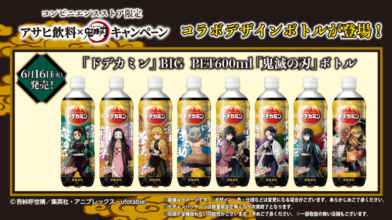 また、「ドデカミン」BIG PET600ml「鬼滅の刃」ボトルがコンビニエンスストア数量限定で2020年6月16日(火)より発売いたします。