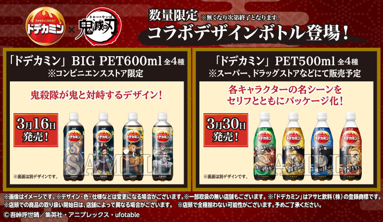 「ドデカミン」と「鬼滅の刃」のコラボデザインボトルが発売。