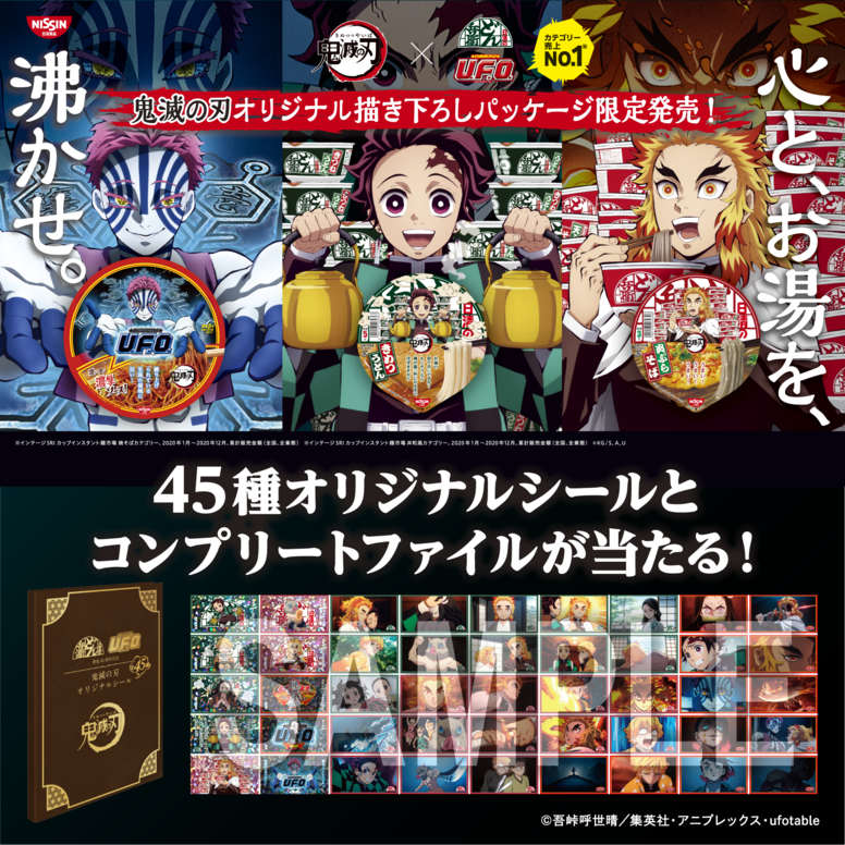 2021.09.21 45周年 日清食品【どん兵衛&U.F.O.】とコラボ !! 心とお湯を沸かせ!!45周年 日清食品【どん兵衛&U.F.O.】が、アニメ「鬼滅の刃」とコラボ !! ufotable描き下ろしパッケージの3品が10月4日(月)から発売!!【45種オリジナルシール コンプリートファイル】プレゼントキャンペーンも!! 詳細はこちらhttps://donbei-ufo-kimetsu.jp