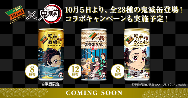 「ダイドーブレンド」 × 「鬼滅の刃」 コラボキャンペーン実施!~全28種類!「鬼滅の刃」コラボデザイン缶も期間限定発売 ~
