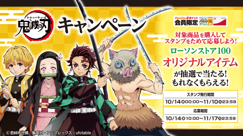 2020年10月14日(水)より、ローソンストア100店舗(※)にて、10月16日(金)に公開する『劇場版「鬼滅の刃」無限列車編』とタイアップしたキャンペーンを実施致します。