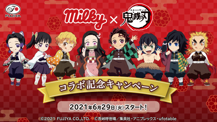 不二家 ミルキーと「鬼滅の刃」のコラボを記念したキャンペーンを2021年6月29日(火)より実施いたします。
