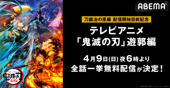 ABEMAにて4月9日(日)に「遊郭編」一挙配信が決定いたしました。
