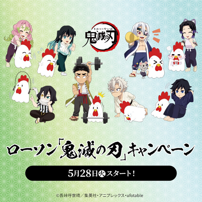2024.05.27 ローソン×鬼滅の刃キャンペーン開催決定! 5/28(火)よりローソン「鬼滅の刃」キャンペーンを開催♪対象の商品を購入すると先着・数量限定でローソンオリジナルのクリアファイルがもらえる企画や、おまけ付きお菓子、オリジナルグッズを発売します!詳しくはキャンペーンページをチェック!https://www.lawson.co.jp/lab/campaign/kimetsu/