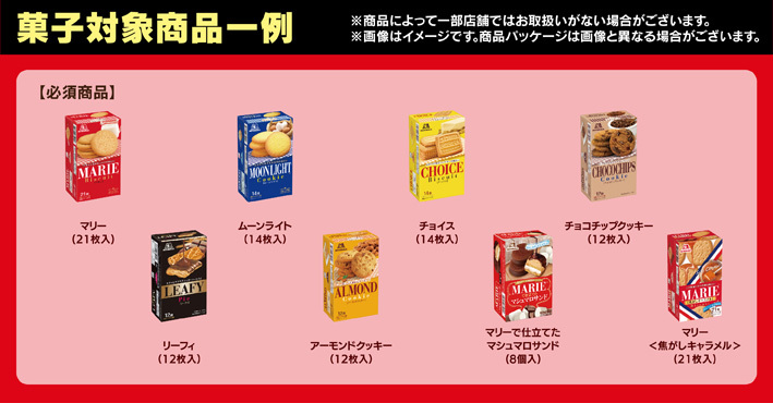 必須商品(森永ビスケット各種)を2個含む 森永製菓菓子3個をお買い上げ