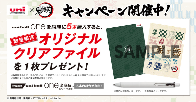 【uni-ball one ×「鬼滅の刃」 オリジナルクリアファイルプレゼントキャンペーン概要】