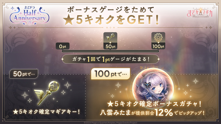 『魔法少女まどか☆マギカ Magia Exedra』、ハーフアニバーサリー記念で新★5キオク 八雲みたま実装!さらに新イベントやマギカストーン最大3,000個もらえるログインボーナスが開始!
