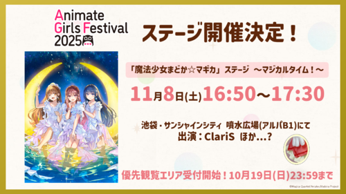 11月8日(土)・9日(日)開催予定の「アニメイトガールズフェスティバル」にて「まどか☆マギカ」のステージが開催決定!