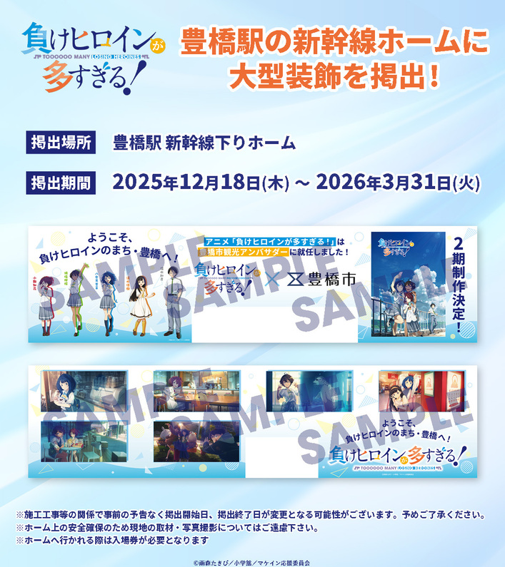 アニメ「負けヒロインが多すぎる!」の「とよはし青春アンバサダー」就任を記念して、豊橋駅の新幹線下りホームに大型装飾を掲出することが決定致しました!