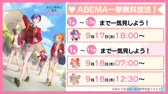 ABEMAにて第1話~第11話無料一挙放送実施!