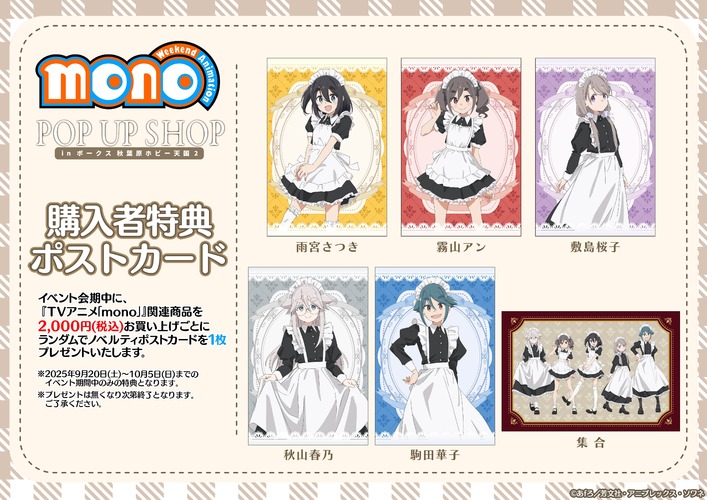 本日9月20日(土)より、TVアニメ「mono」POP UP SHOP in ボークス秋葉原ホビー天国2がスタート!