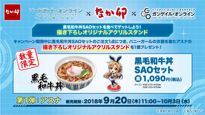 「ソードアート・オンライン」×「なか卯」×「ガンゲイル・オンライン」キャンペーンの開催が決定!