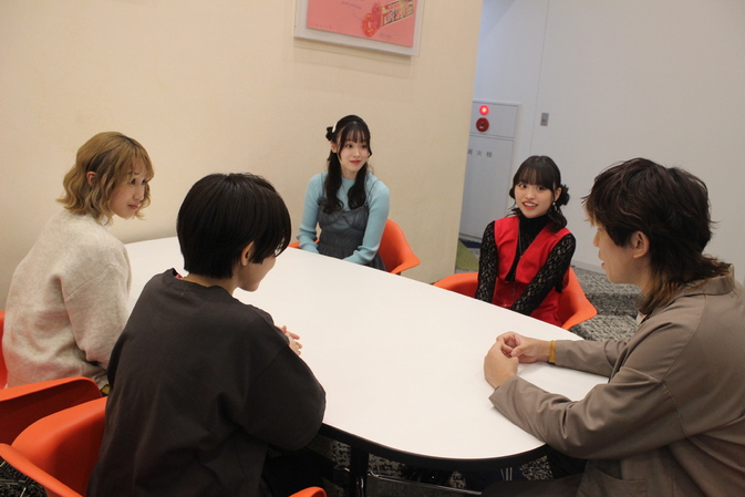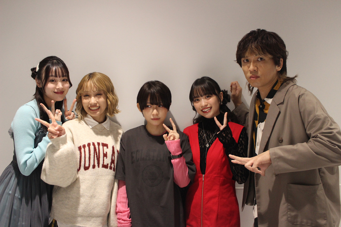 夕方から始まるイベントの前に取材や撮影などをこなし、合間には控室でわいわいとおしゃべりに花を咲かせるキャストたち。かわいらしくスタイリングしてもらったヘアメイクや、それぞれの演じるキャラクターのイメージカラーを差し色にした衣装に笑顔を見せ、仲良く一緒に写真を撮るシーンも。守乃のSNSでおなじみブレブレ写真は、スマホのバースト連写でおこなっているようだ。