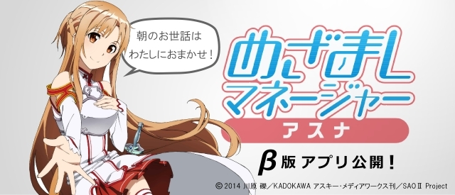 キャラクターの録り下ろしボイスと合成音声で、目覚ましから天気や占い、スケジュールなどをおしえてくれる「めざましマネージャー」の第一弾として、アスナが登場!