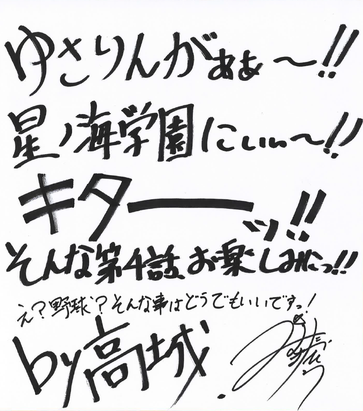 2015.07.22 水島大宙さんから応援色紙が到着! Charlotte Charlotte(シャーロット)第4話「刹那の本気」にむけて、高城丈士朗役の水島大宙さんから応援色紙を頂きました。第4話「刹那の本気」は7月25日より放送開始。お楽しみに。