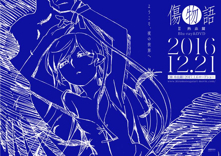 2016.12.21 傷物語〈Ⅱ熱血篇〉ブルーレイ&DVD本日発売! 傷物語 傷物語〈Ⅱ熱血篇〉ブルーレイ&DVDが本日発売!完全生産限定版には特典CD(「傷物語」劇伴音楽集 其ノ貳 熱血篇)や、限定版・通常版共通特典として西尾維新書き下ろしキャラクターコメンタリーが収録。ぜひお手にとっていただけますと幸いです。