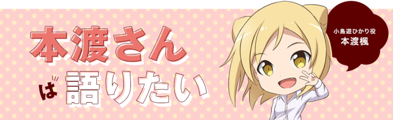 2017.01.15 【○○さんは語りたいインタビュー】 初回はひかり役・本渡楓さんが登場! 亜人ちゃんは語りたい 本日よりホームページにて連載インタビュー「○○さんは語りたい」を掲載いたします!記念すべき初回は、小鳥遊ひかり役・本渡楓さんによる「本渡さんは語りたい」です! インタビューはこちらから!