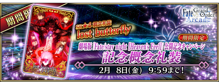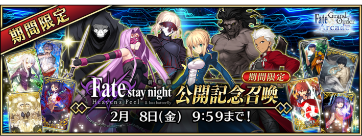 全国のゲームセンターで稼働中のアーケードゲーム『Fate/Grand Order Arcade』にて、「劇場版「Fate/stay night [Heaven's Feel]」 Ⅱ.lost butterfly公開記念キャンペーン」 が本日より開催中!