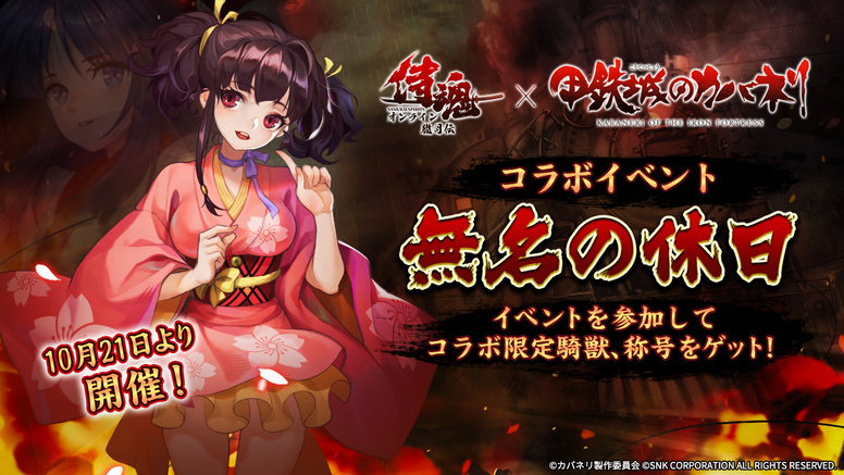 本日10月21日(月)より「甲鉄城のカバネリ」×「侍魂オンラインー朧月伝ー」のコラボを開始いたします。