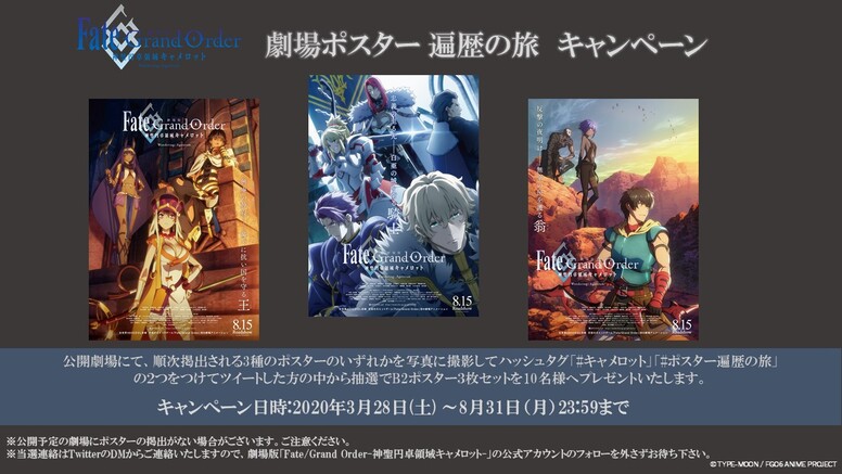 劇場版「Fate/Grand Order-神聖円卓領域キャメロット-」劇場ポスター遍歴の旅キャンペーン期間再延長のお知らせ