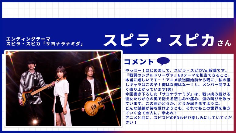 本作のエンディングテーマはスピラ・スピカの「サヨナラナミダ」に決定!