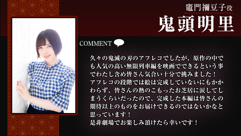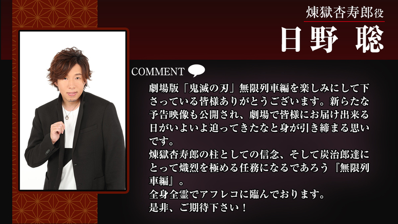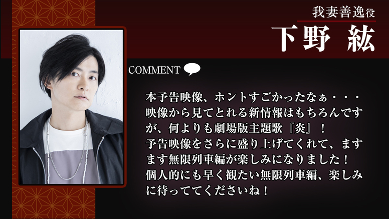 劇場版「鬼滅の刃」無限列車編の新情報公開を記念して、以下皆様からコメントが到着!