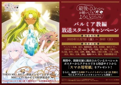 TVアニメ「最後にひとつだけお願いしてもよろしいでしょうか」パルミア教編の放送スタートを記念し、アニメイトにてキャンペーンを開催いたします。