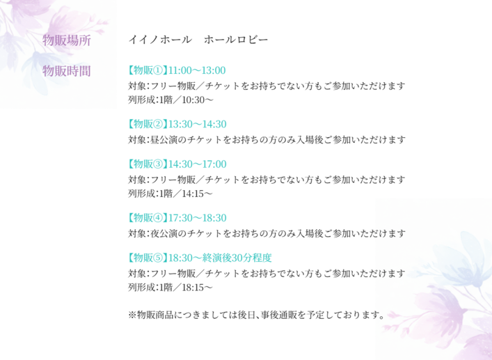 物販時間を公開いたしました!