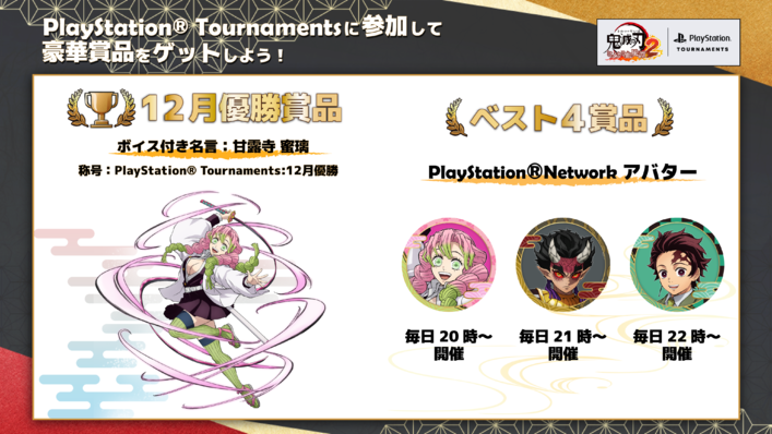 12/8(月)からは3つのトーナメントに加えて、『我妻 善逸(無限城編)』特別大会も23時から追加で開催されます。