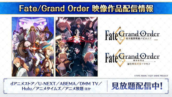 「Fate/Grand Order -終局特異点 冠位時間神殿ソロモン-」の期間限定見放題配信を開始しました。