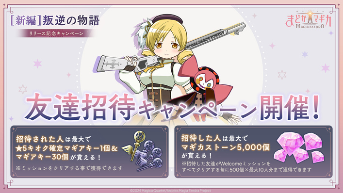 招待された人は、ミッションをクリアすることで、最大で「★5キオク確定マギアキー」と「マギアキー」30個を獲得できます。