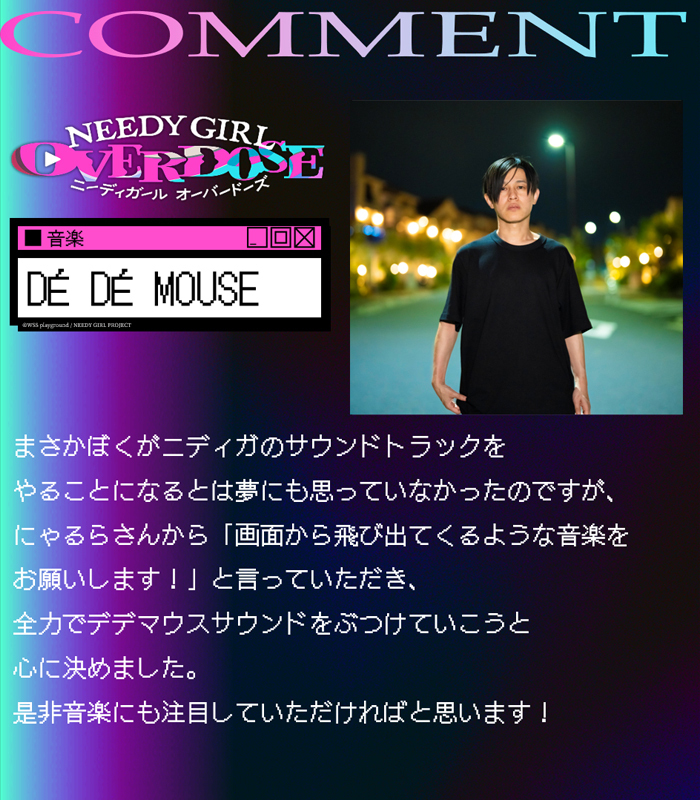 作中の音楽を担当するDÉ DÉ MOUSE・原口沙輔からコメントが到着いたしました!