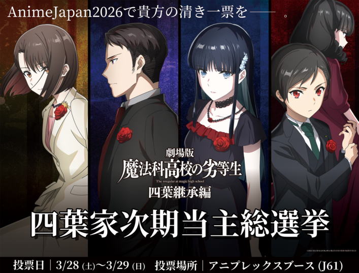 3月28日(土)~29日(日)に開催されるAnimeJapan2026にて、劇場版「魔法科高校の劣等生 四葉継承編」の作品展示が決定しました!