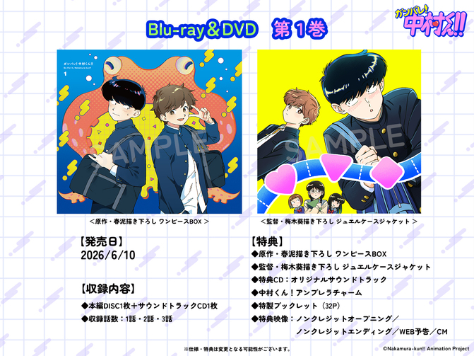 TVアニメーション『ガンバレ!中村くん!!』Blu-ray&DVD 第1巻の発売告知CMを公開!オープニングテーマ『瞬発的に恋しよう』のMVも公開いたしました!