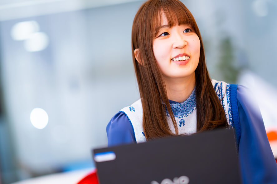 企画推進部は少人数の部署で、私を含めて3人になります。少人数だからこそ、情報共有をスムーズに行えて、柔軟に対応することができます。問題や確認事項があると、その都度相談して密にコミュニケーションをとり、それぞれの業務を進めています。私はこの部署に来て4年目になるのですが、キャリアが一番短く、先輩方は各業務のプロフェッショナルなので、日々学ぶことばかりです。